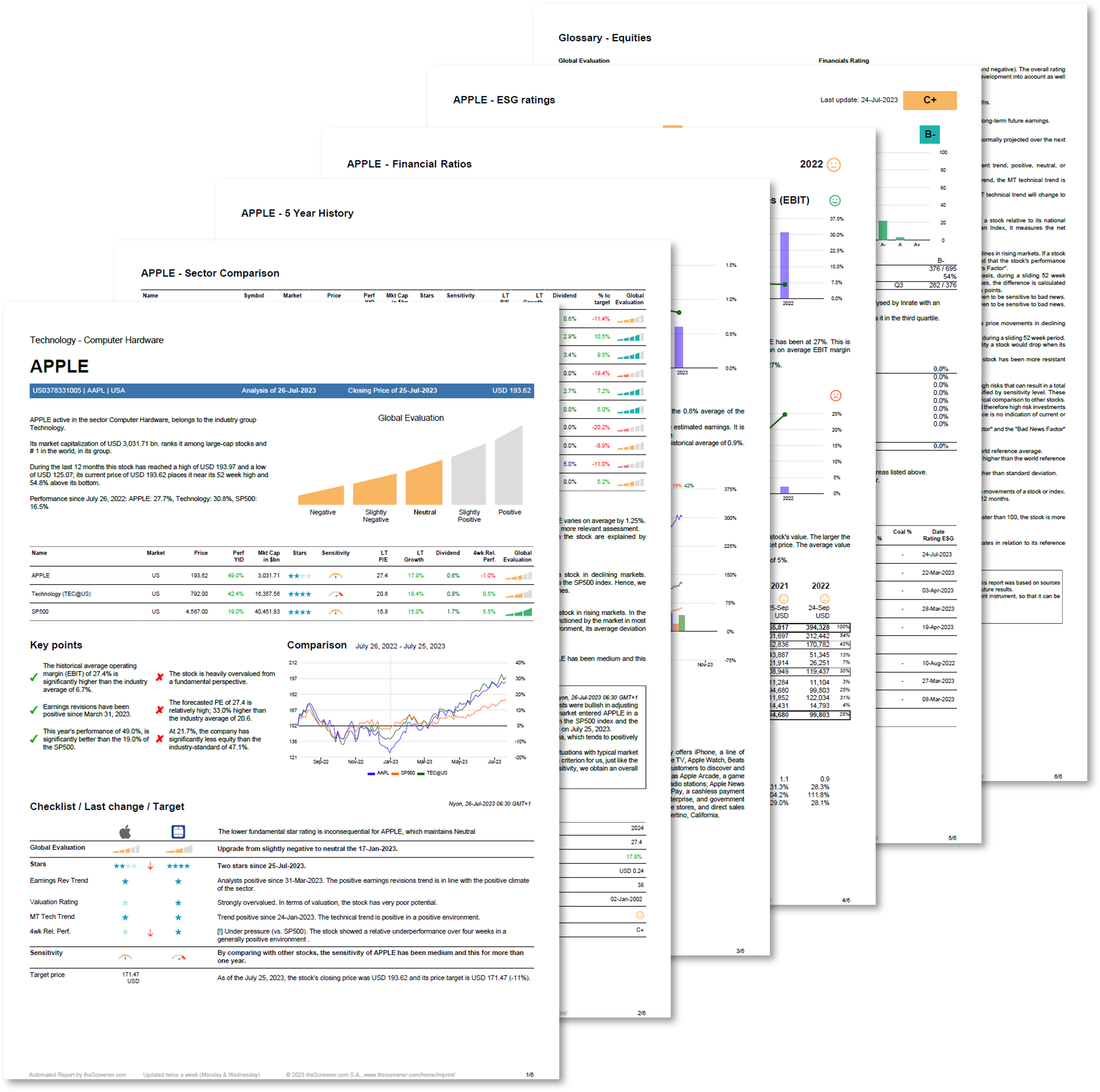 Um das Anlageuniversum systematisch überwachen zu können, sind wir eine Partnerschaft mit theScreener eingegangen. Damit können wir optional das Global Evaluation Risk und das ESG Rating pro Instrument (Aktien und Fonds) automatisch monitoren. To systematically monitor our investment universe, we have partnered with theScreener. This allows us to automatically monitor the Global Evaluation Risk and ESG rating for each instrument (stocks and funds) on an optional basis.